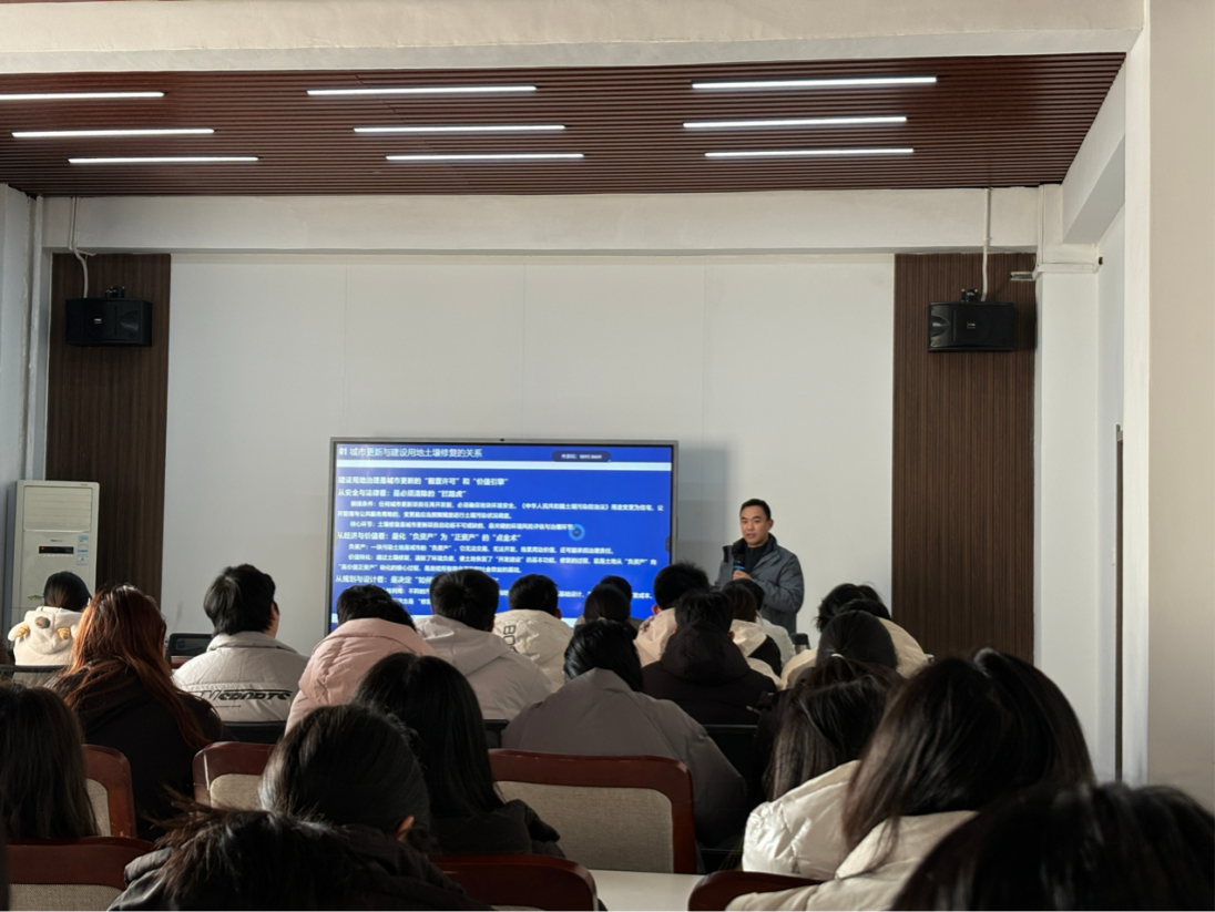 2026年1月7日,中铁一局集团有限公司陈瑞博士与招商局集团有限公司正高级工程师李建亮莅临我院,分别为我院师生做《唤醒沉睡的城市土地》和《“双碳”目标和你我身边这些事》学术报告。